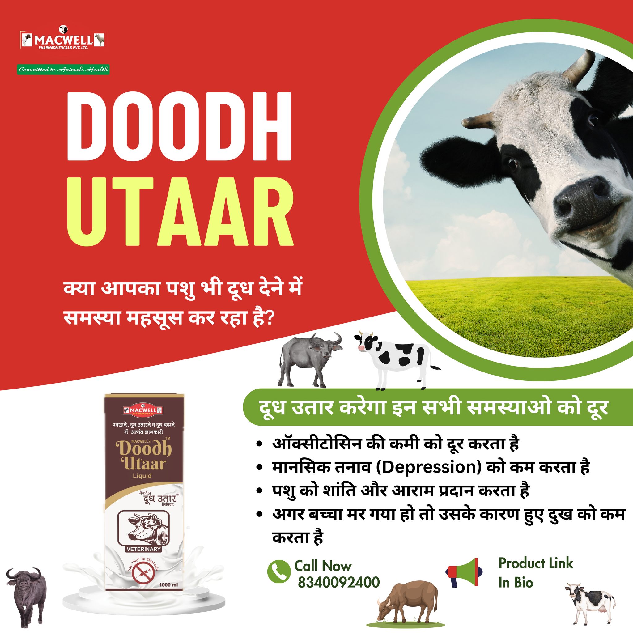 दूध उतार लिक्विड एक विशेष आयुर्वेदिक और पोषक तत्वों का मिश्रण है, जो उन पशुओं के लिए बनाया गया है जो समय पर थनों में दूध नहीं उतारते या पॉसते नहीं हैं । यह बिना किसी हानिकारक इंजेक्शन के पशु को शांत कर पूरा दूध उतारने में मदद करता है ।