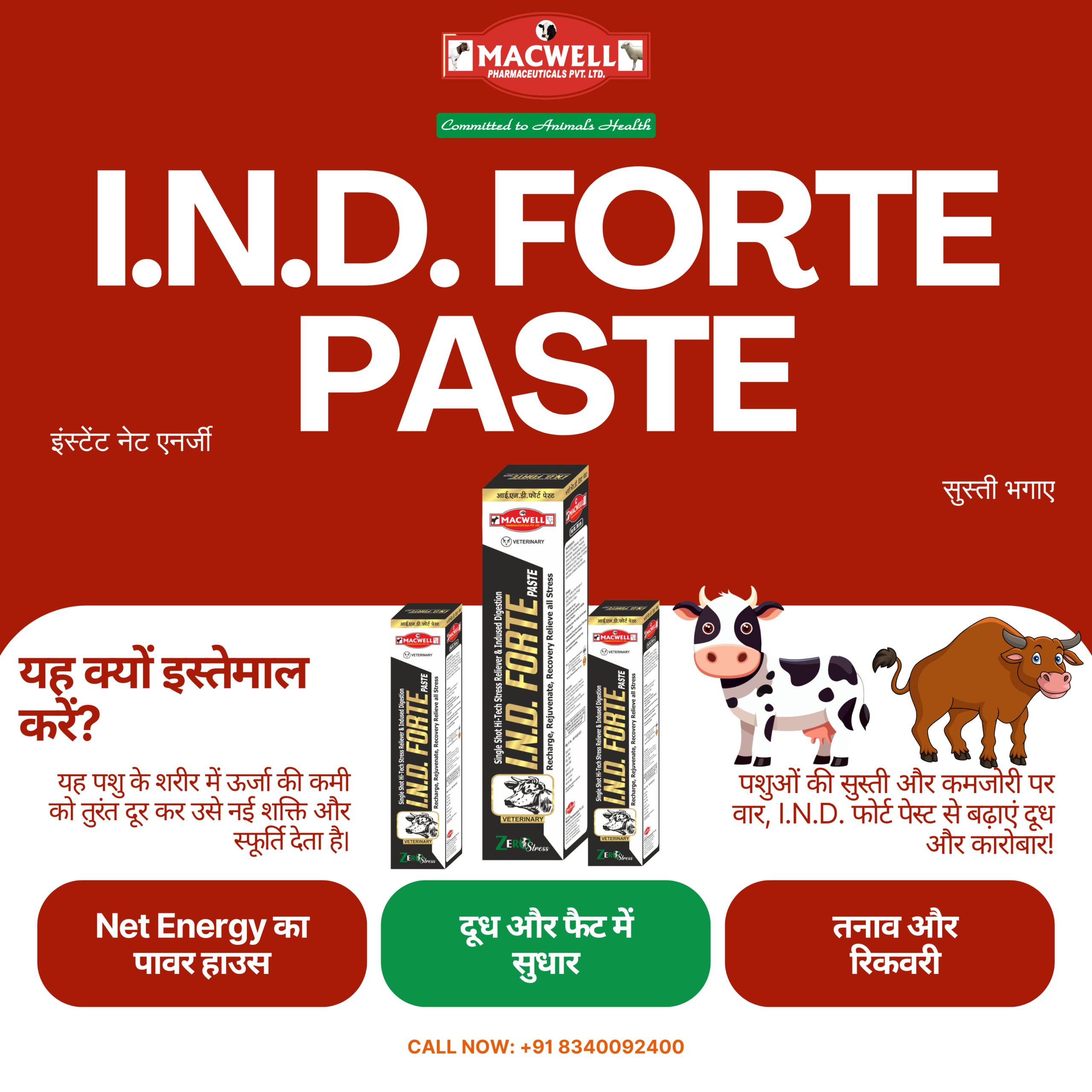 नेट एनर्जी (Net Energy): यह 27 ऊर्जादायक पोषकों का मिश्रण है जो पशु को तुरंत ताकत देता है और कमजोरी दूर करता है ।